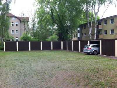 Feste und trockene Metallgaragen mit Betonfundament und Metalltrenn-wänden.