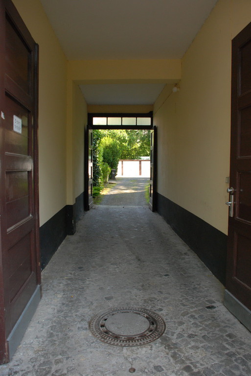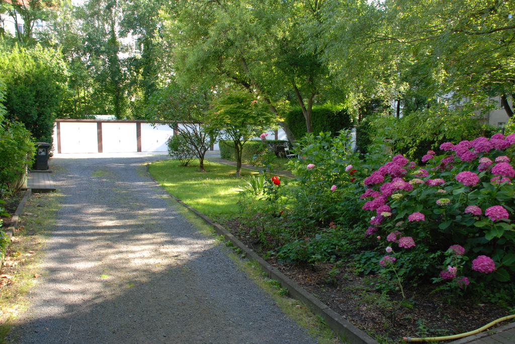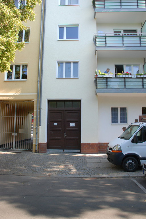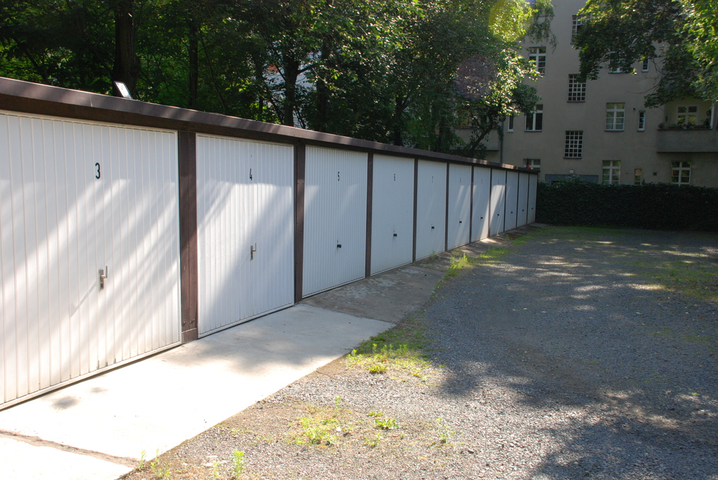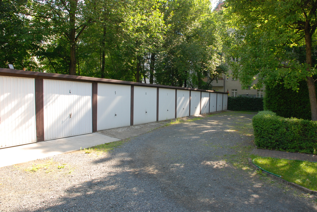Die insgesamt 13 Garagen auf dem Hof sind nummeriert. Die Breite der Hofzufahrt beträgt 2,10 m.
