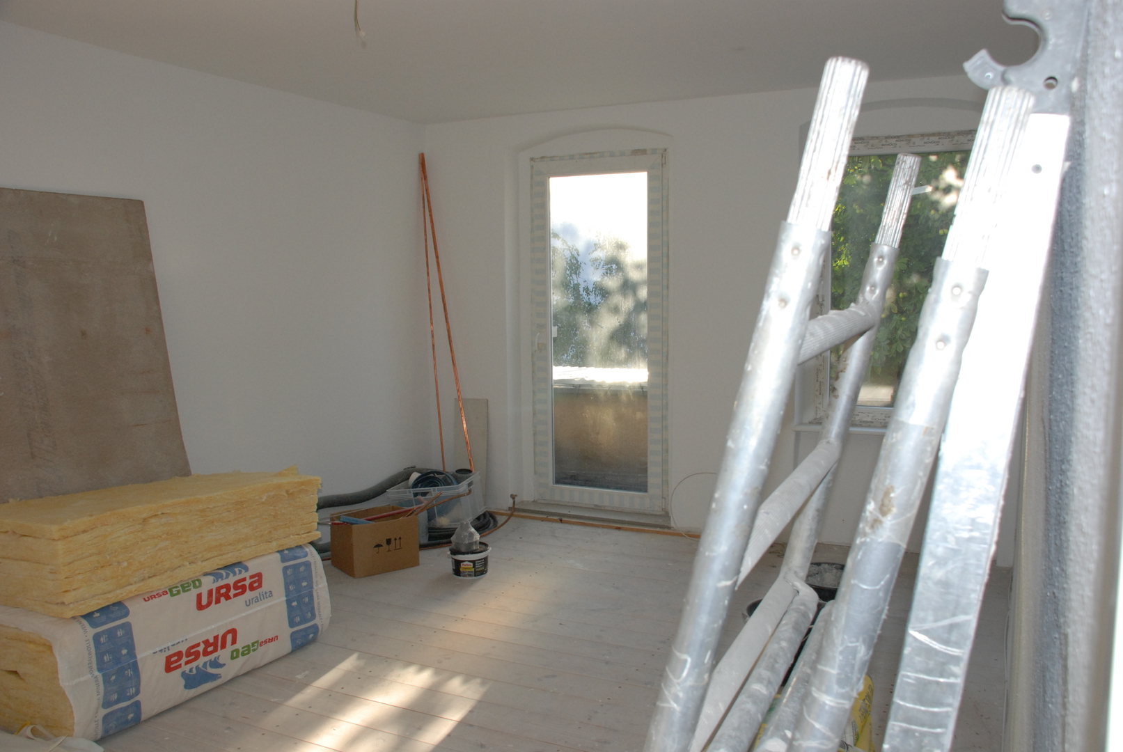Das Bad, die Küche und der Flur sind gefliest, die Wohnräume verfügen über Dielenböden.