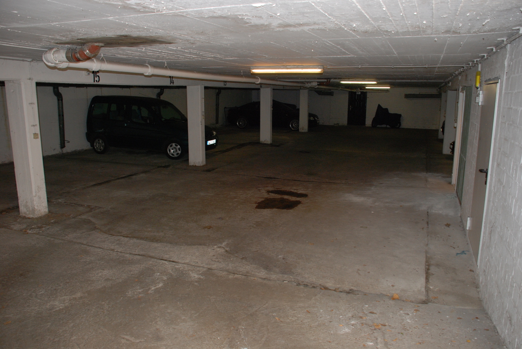 1. Tiefgaragenplätze (Höhenbegrenzung der Zufahrt von 1,85 m) in einer kleinen gepflegten Anlage.
